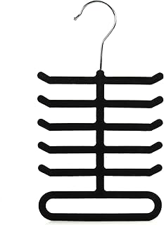 HANGERWORLD ブラックベルベットフロックタイラックハンガー ベルトオーガナイザー クローゼットタイホルダー 滑り止めプラスチックアクセサリーハンガー 11インチ x 16インチ