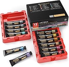 ARTEZA Metallic Gouache Paint, Set of 12 Colors/Tubes (12ml/0.4 US fl oz) Metallic Paints, Ideal for Canvas Painting, Watercolor Paper, Toned Paper, or Using with Watercolors and Mixed Media