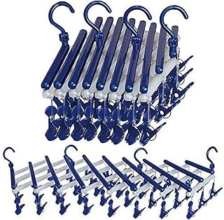 ピンチハンガー K&TIME 洗濯ハンガー 洗濯 物干し ハンガー 角ハンガー 伸縮ハンガー ぴんちはんがー ラクラク 回転ピンチ 29ピンチ 耐紫外線仕様 贈り物 2本シューズハンガー (ディープブルー)