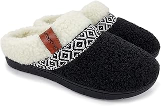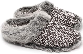 ofoot レディース 屋内スリッパ カシミアニット 暖かいフリース裏地 厚手パッド入り低反発素材 滑り止めスリッポン