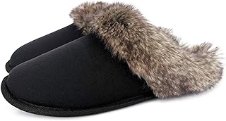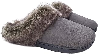 ofoot レディース ファジー 暖かい 快適 低反発素材 寝室 フリース スリッパ 屋内 屋外 冬 家 靴 滑り止めゴム底