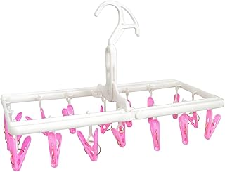 aisen 室内干し ミニ 角ハンガー ピンチ 16個付 ピンク 40×19.5×19.5㎝