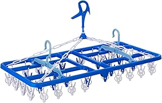 aisen 室内干し ミニ 角ハンガー ピンチ16個付 ブルー 40×19.5×19.5㎝