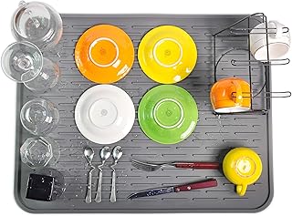 シリコンディッシュ乾燥マット 100%エコフレンドリーなキッチンディッシュ水切りマット ワイングラス/ベビーボトル/カップ/抗菌/耐熱鍋/「17.6 x 15.8」 グレー