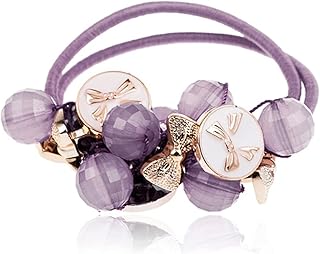 ヘアゴム ビーズ シュシュ ヘアアクセサリー ビーズ クリア 天然 サークル ボール 金属ボタン デイリー 結婚式 パーティー 大人っぽい ヘアアクセサリー ヘアゴム レディース ピンク モカ ブラック パップル 4色 (パップル)