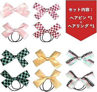鬼滅の刃 ヘアゴム ヘアピン シュシュ ヘアリング 髪飾り 竈門 禰豆子 竈門 炭治郎 我妻 善逸 冨岡 義勇 キャラクター周辺 蝶結び おしゃれ かわいい 人気 軽量 小物 誕生日 プレゼント レディース 女性 女の子 リボン ヘアアクセサリー 萌えグッズ 2点セット (我妻 善逸柄)