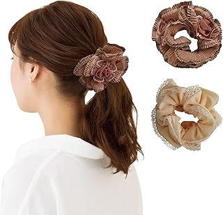 BIANHUAN シュシュ ボリューム 大人 大きめ ヘアゴム アクセサリー レディース ヘアアクセサリー レース 2点セット 髪留め 髪止め 髪どめ シンプル キレイめ 上品 結婚式 お呼ばれ パーティー 誕生日 クリスマス 卒業式 入学式 プレゼント ギフ