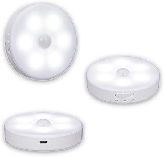 NeoClear スイッチ付き 充電式 人感センサーライト 700mAh 明暗センサー マグネット 両面テープ付き 3個入 昼白色