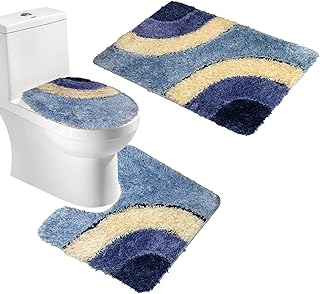 Amagical Microfiber Rug 3 Piece Bath Mat Set Pedestal Lid Toilet Cover Rug Bath Mat (Blue) 141[並行輸入]