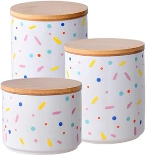 Ceramics 防湿ストレージジャー 保管用 耐久性 異なるパターン 密封竹製蓋付き 食品保存用 お茶 キャンディー クッキー コーヒー オートミール シュガーコンテナ (スーツB)