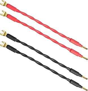 4ユニット - 6インチ - Canare 4S11 - オーディオマニアグレード - 11AWG - HiFiスピーカーケーブルジャンパー ゴールドバナナとスペードコネクタで終端