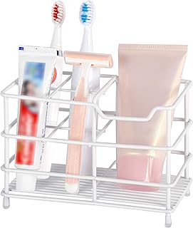 WEBI 歯ブラシと歯磨き粉ホルダー 金属製 幼児 子供用 電動歯ブラシホルダー オーガナイザー スタンド バスルーム用 4スロット ステンレススチール ホワイト