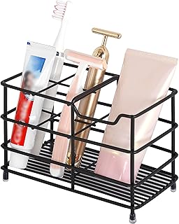 WEBI 歯ブラシと歯磨き粉ホルダー 金属製 幼児 子供用 電動歯ブラシホルダー オーガナイザー スタンド バスルーム用 4スロット ステンレススチール ブラック