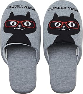 ニッポン スリッパ フレンズヒル ネコマンジュウ 22-24cm グレー ソフト めがね ネコ 刺繍 210650