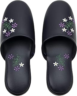 ニッポン スリッパ ビニールレザー 花刺繍 22-24cm ネイビー ふんわりクッション 350622