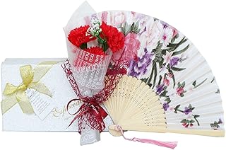 母の日 ソープフラワー カーネーション レッド ギフトボックス付き 花束 プレゼント 誕生日 枯れない花 石鹸花 記念日 お祝い 2021 (華優美扇子&カーネーション レッド)